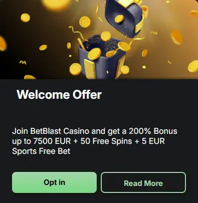 New players can take advantage of a generous welcome package, including a 200% bonus up to €7,500, 50 free spins, and a €5 free bet. Featuring a diverse library of slots, table games, and live dealer options, the casino ensures endless entertainment. With 24/7 customer support, responsible gambling tools, and user-friendly design, BetBlast creates a reliable and enjoyable gaming environment.